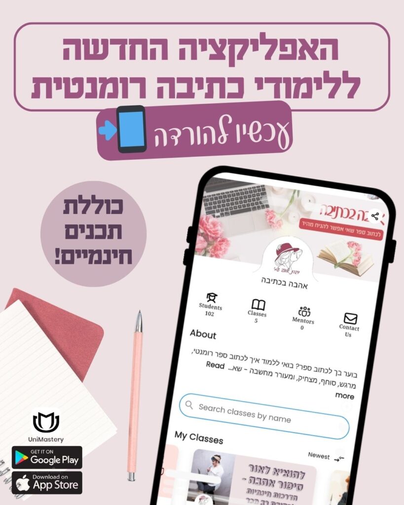 📲 האפליקציה החדשה ללימודי כתיבה רומנטית
